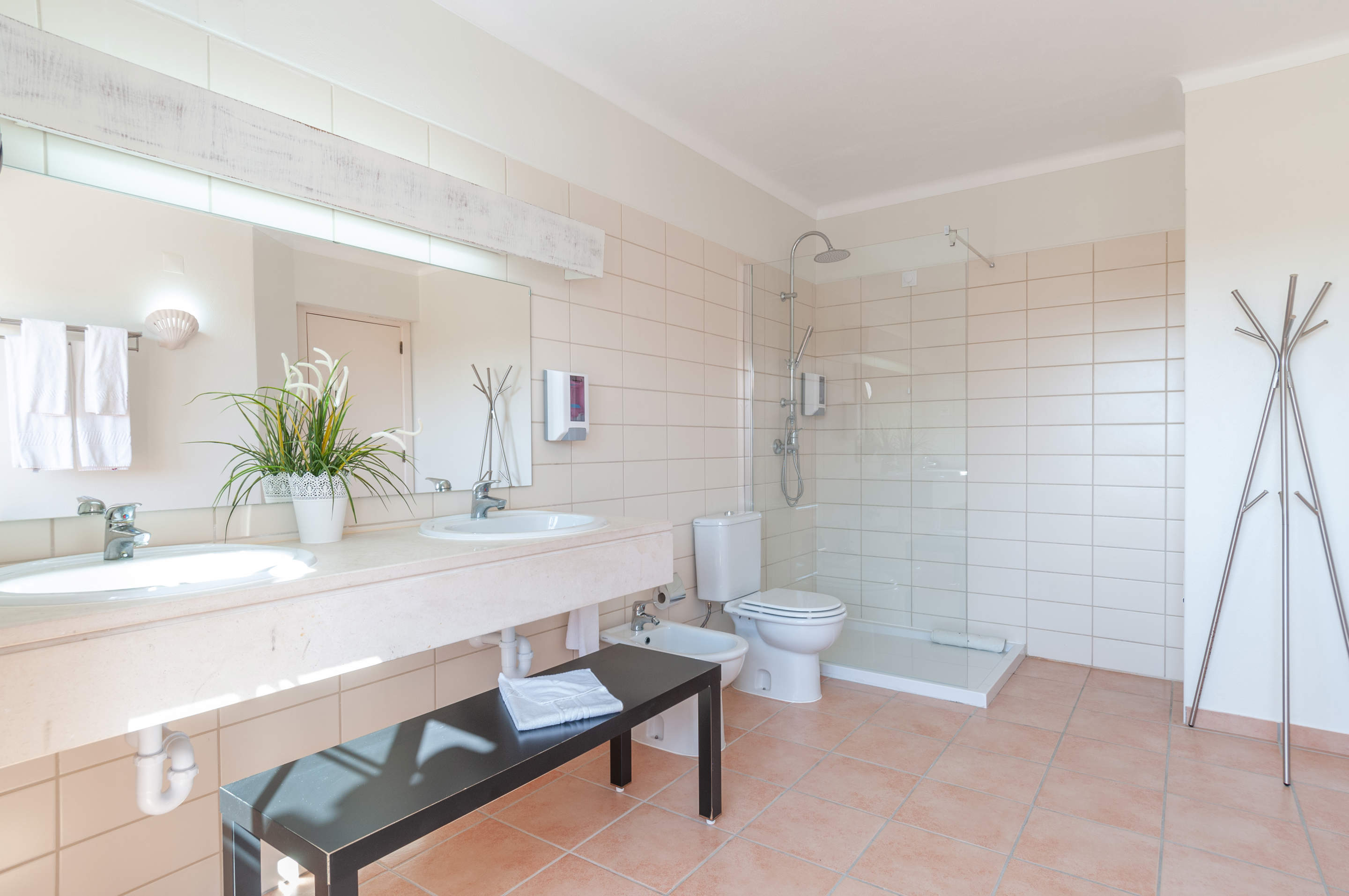 Bedroom four is the master suite, with double bed; split unit a/c; doors to the terrace; double wardrobes with safe and a large en suite bathroom with shower, hairdryer and double vanities.