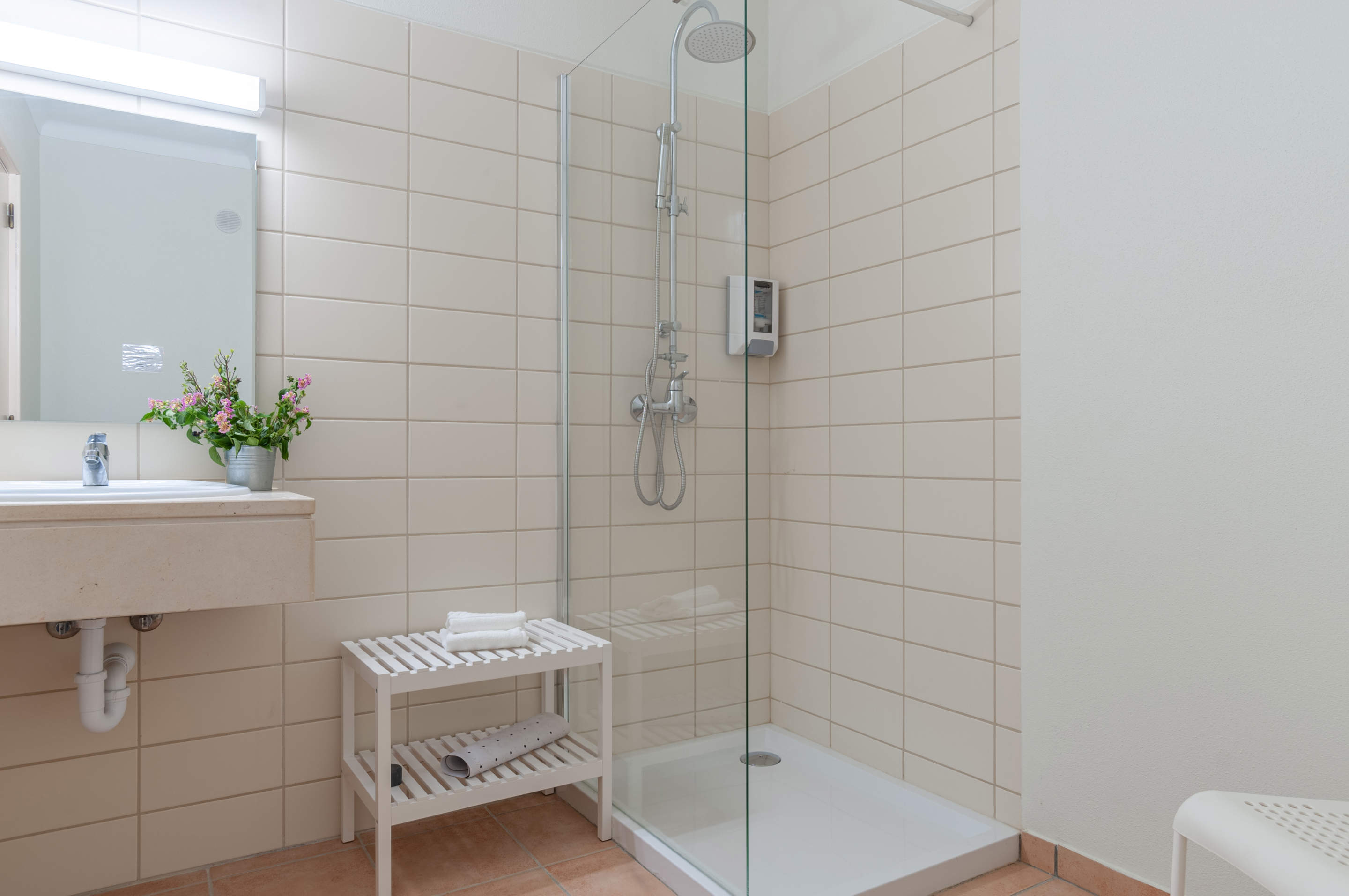 Bedroom one is on the ground floor of the villa and this bedroom has twin beds; split unit a/c; double wardrobes and doors to the patio. This bedroom utilises the adjacent restroom with shower unit. There is also an additional guest cloakroom on the ground floor.