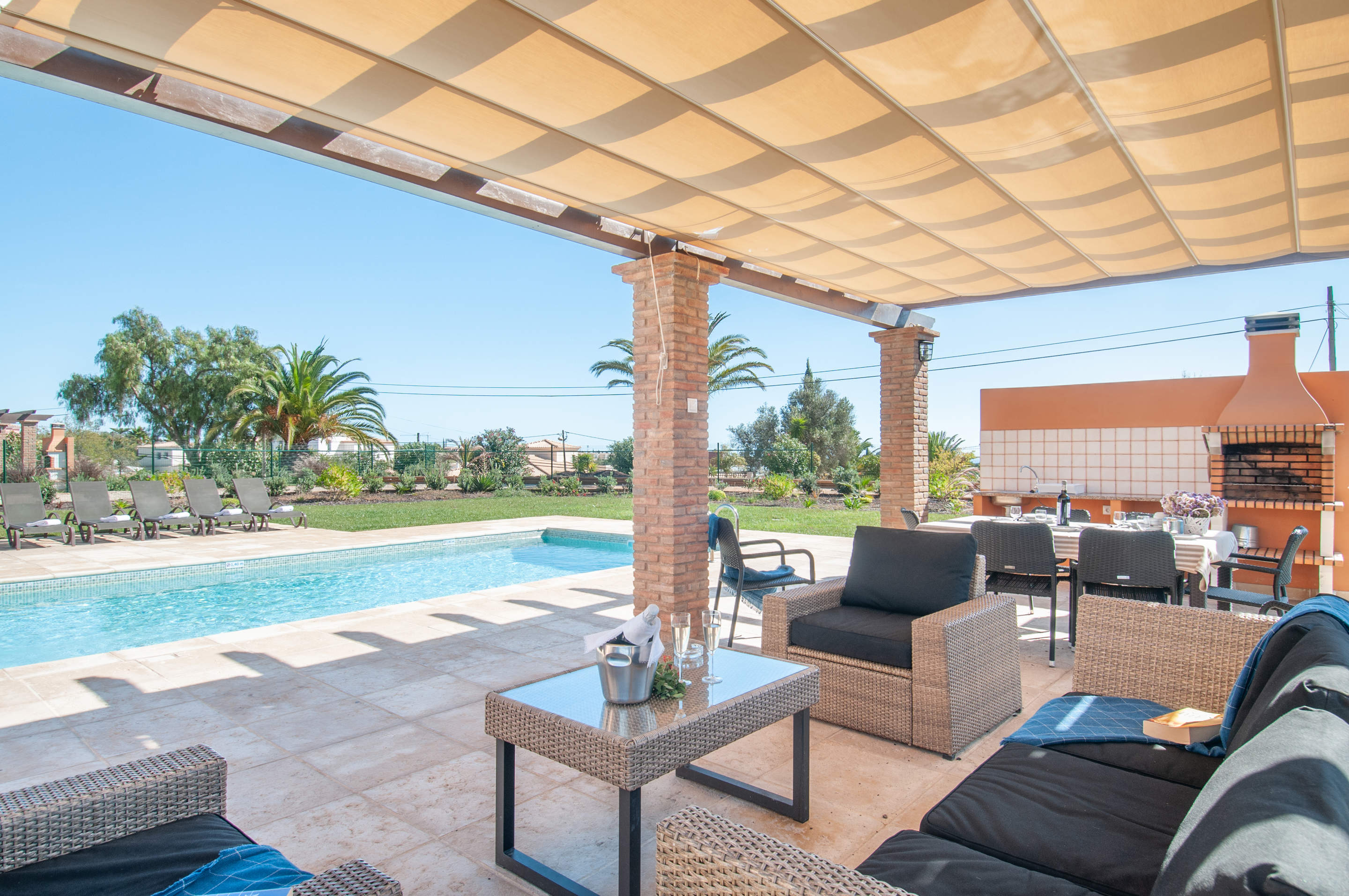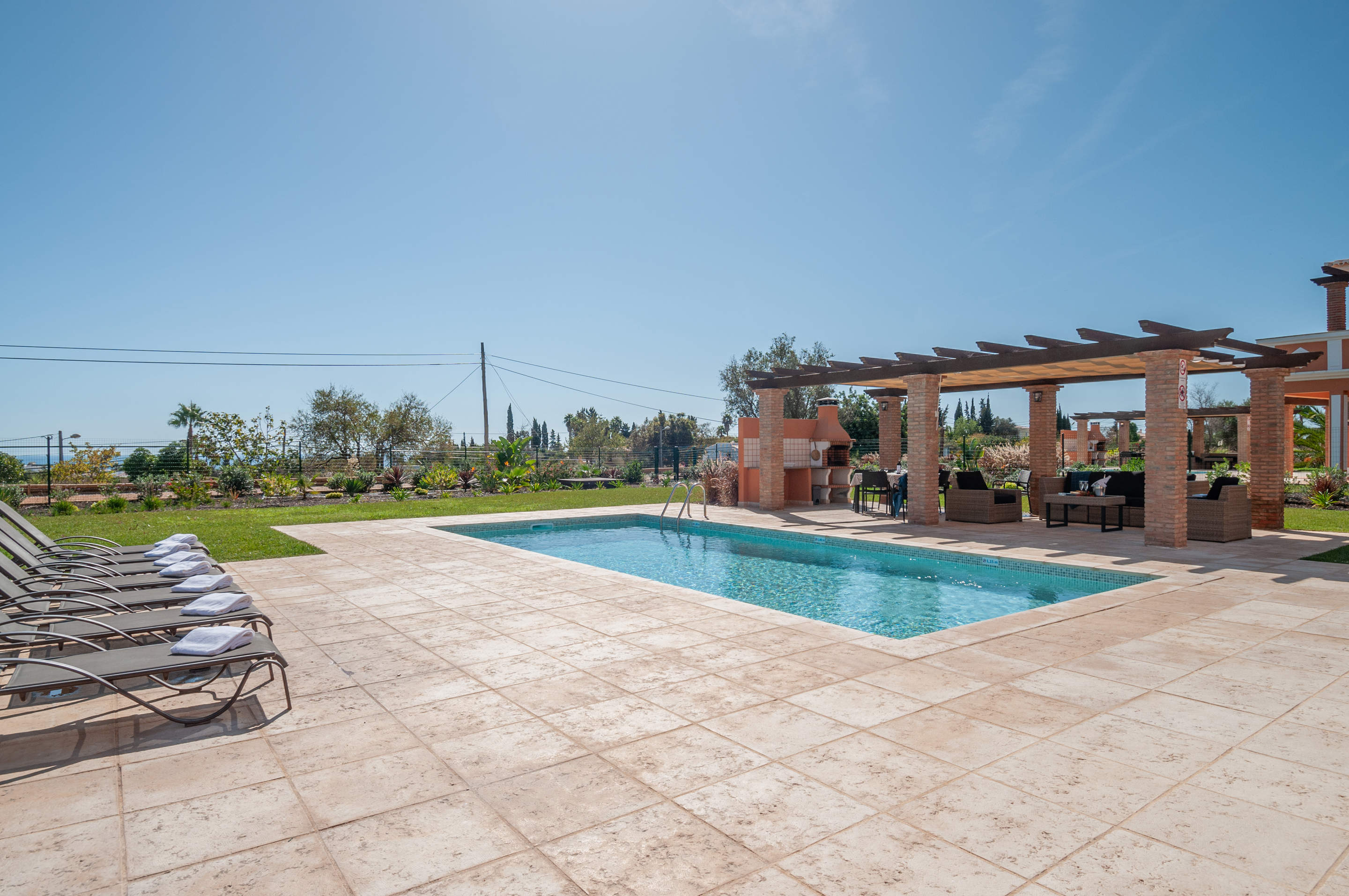 Every villa has its own private saltwater swimming pool that measures 9 x 4 metres approximately with steps and ladder entry. The poolside terraces are furnished with 8 sun loungers and are flanked by lawn gardens. Shaded poolside comfy seating and dining area, with table and chairs, brick built charcoal BBQ and food prep area.