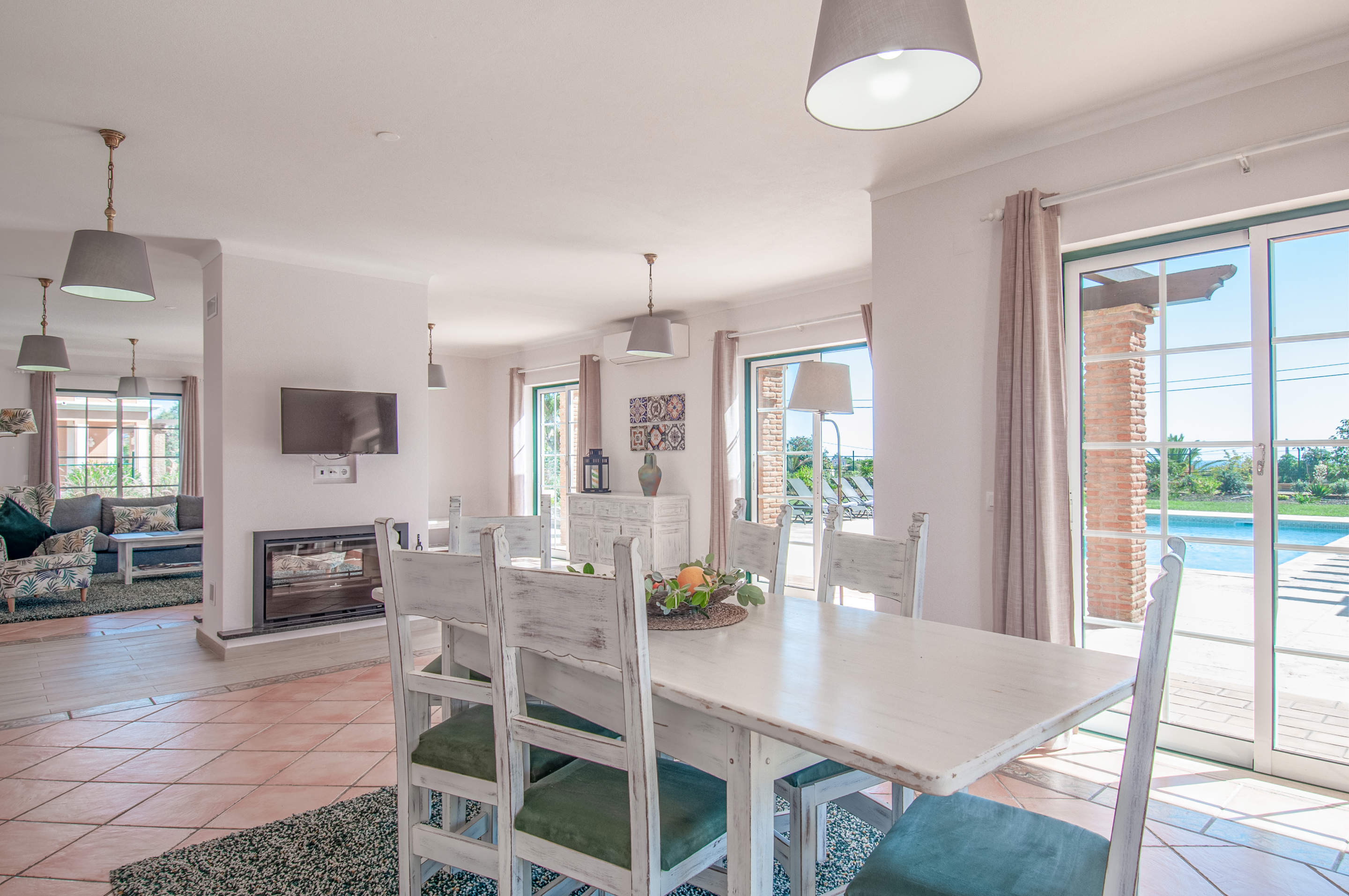 Open plan living/ dining area furnished with comfy sofas and a dining table & chairs. Split unit a/c, double sided fireplace; Wi-fi internet connection; telephone to reception; 2 x wall mounted flat screen TVs with a wide range of international IPTV channels. Double patio doors lead directly to the poolside terrace.
