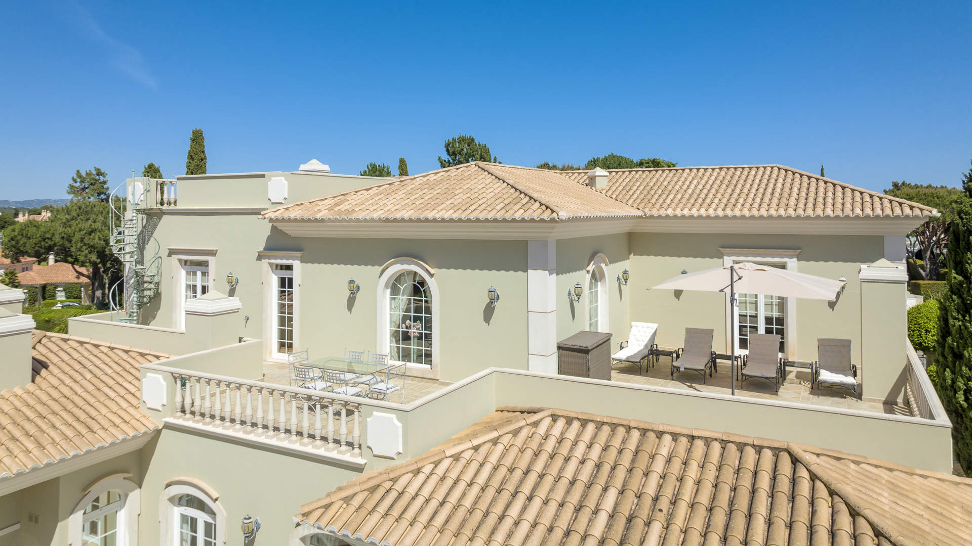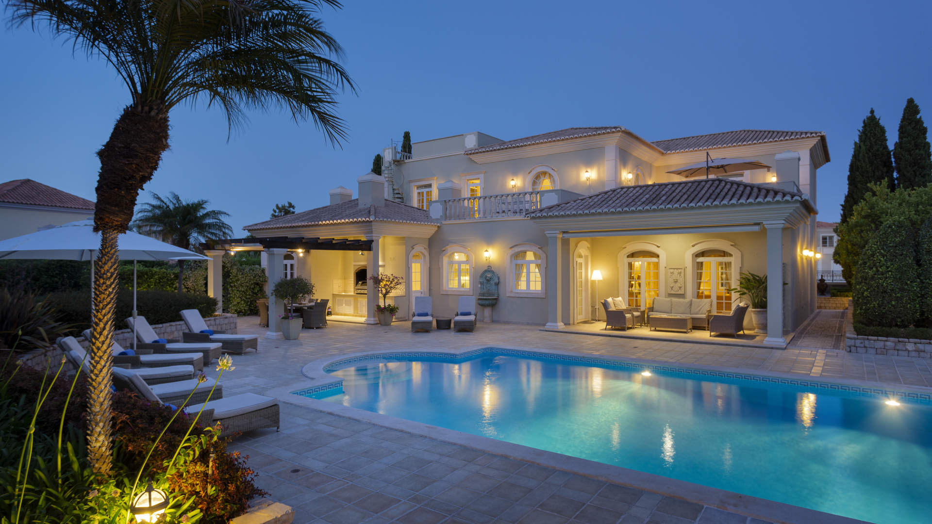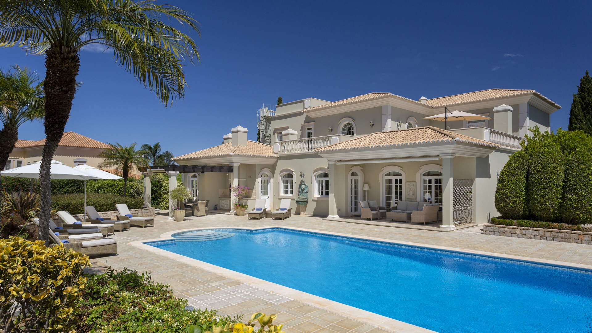 Set in beautiful, landscaped grounds, Villa Michelle is one of the finest villas available for holiday rental in Quinta do Lago, the Algarve's premier resort. Designed by one of Portugal's leading classical architects, it has a built area of 695 square metres, on three floors, which is considerably larger than average, on a site of 2000 square metres. With electric entrance gates, full air-conditioning cooling & heating and a large, heated swimming pool, it is equipped and furnished to the highest standard.