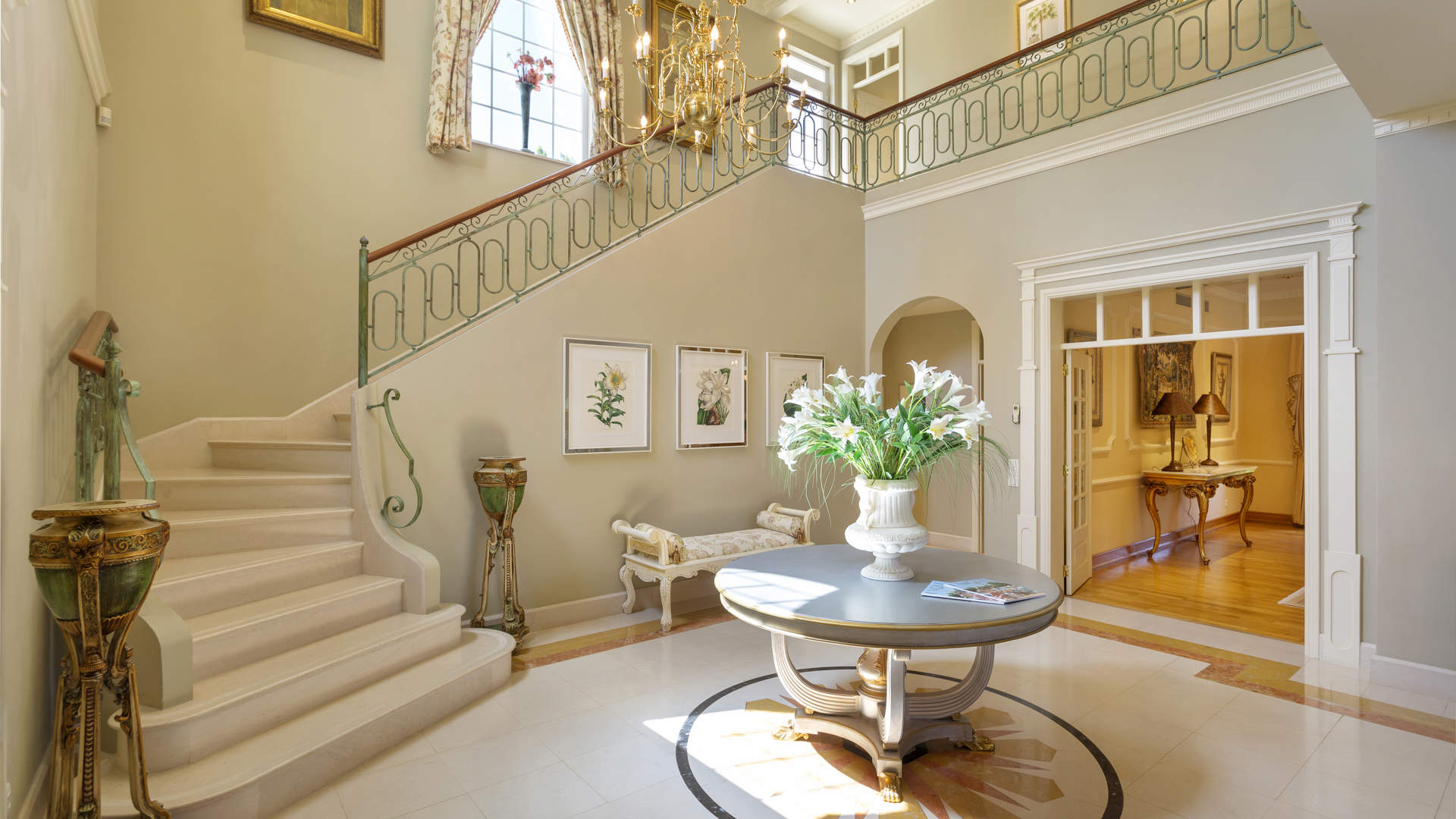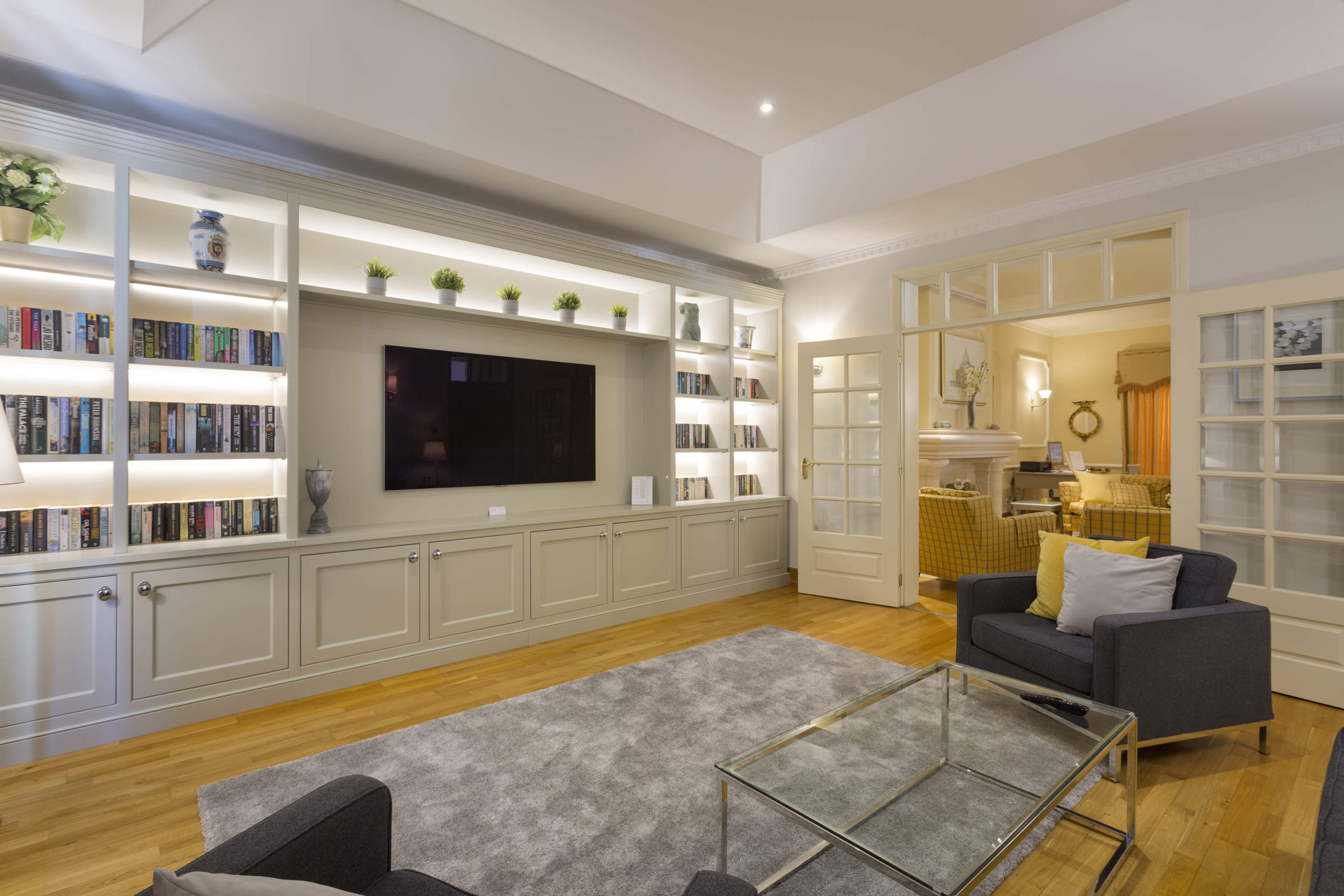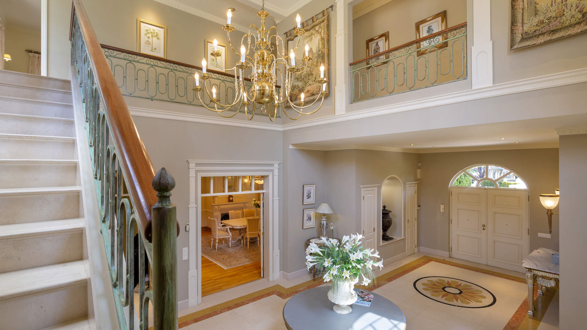 The huge entrance hall with a two-storey high ceiling gives Villa Michelle that essential "wow" factor as soon as you open the door. The large, elegant, lounge has patio doors which lead out to the pool terrace. It is beautifully furnished with oak flooring, classical sofas and armchairs and a stone and marble fireplace.