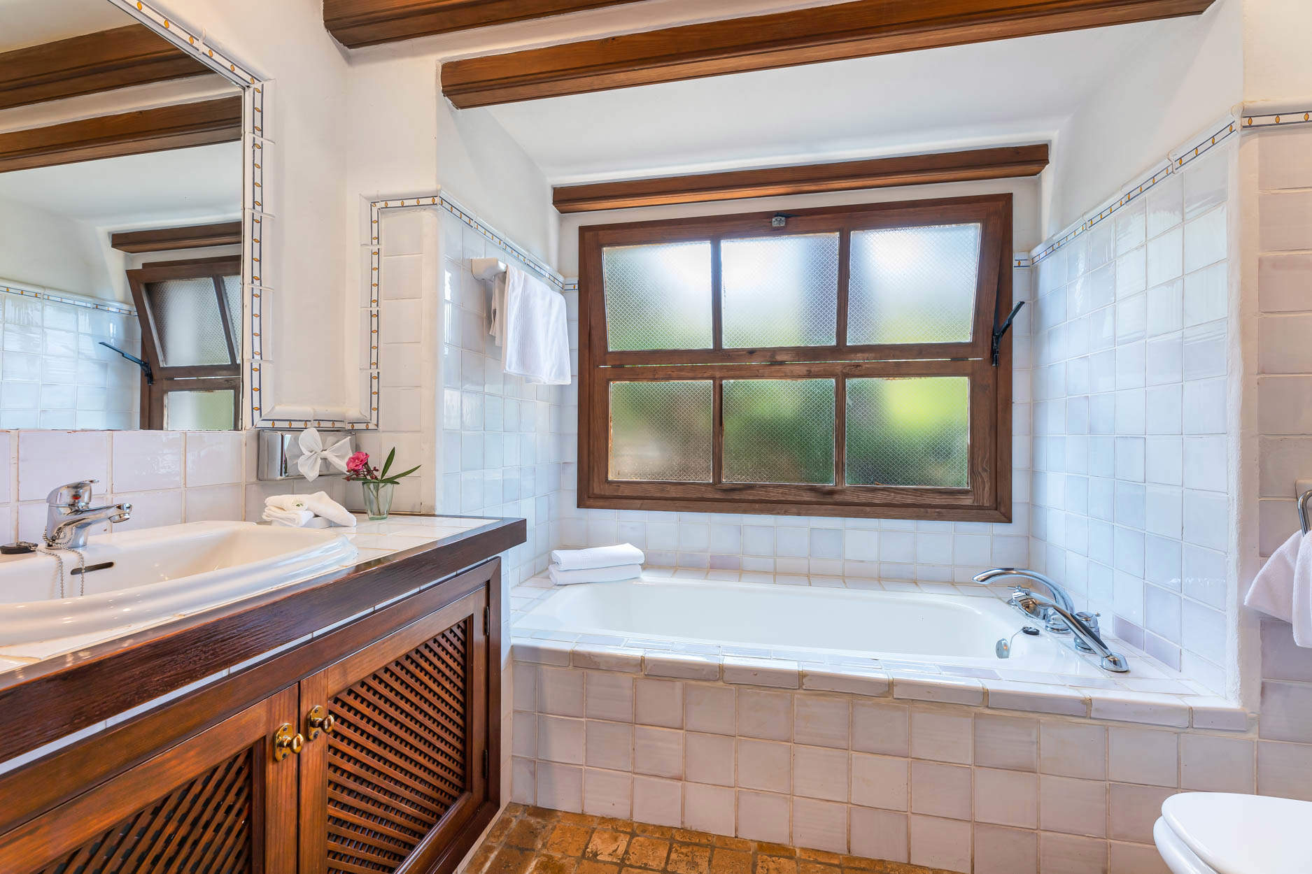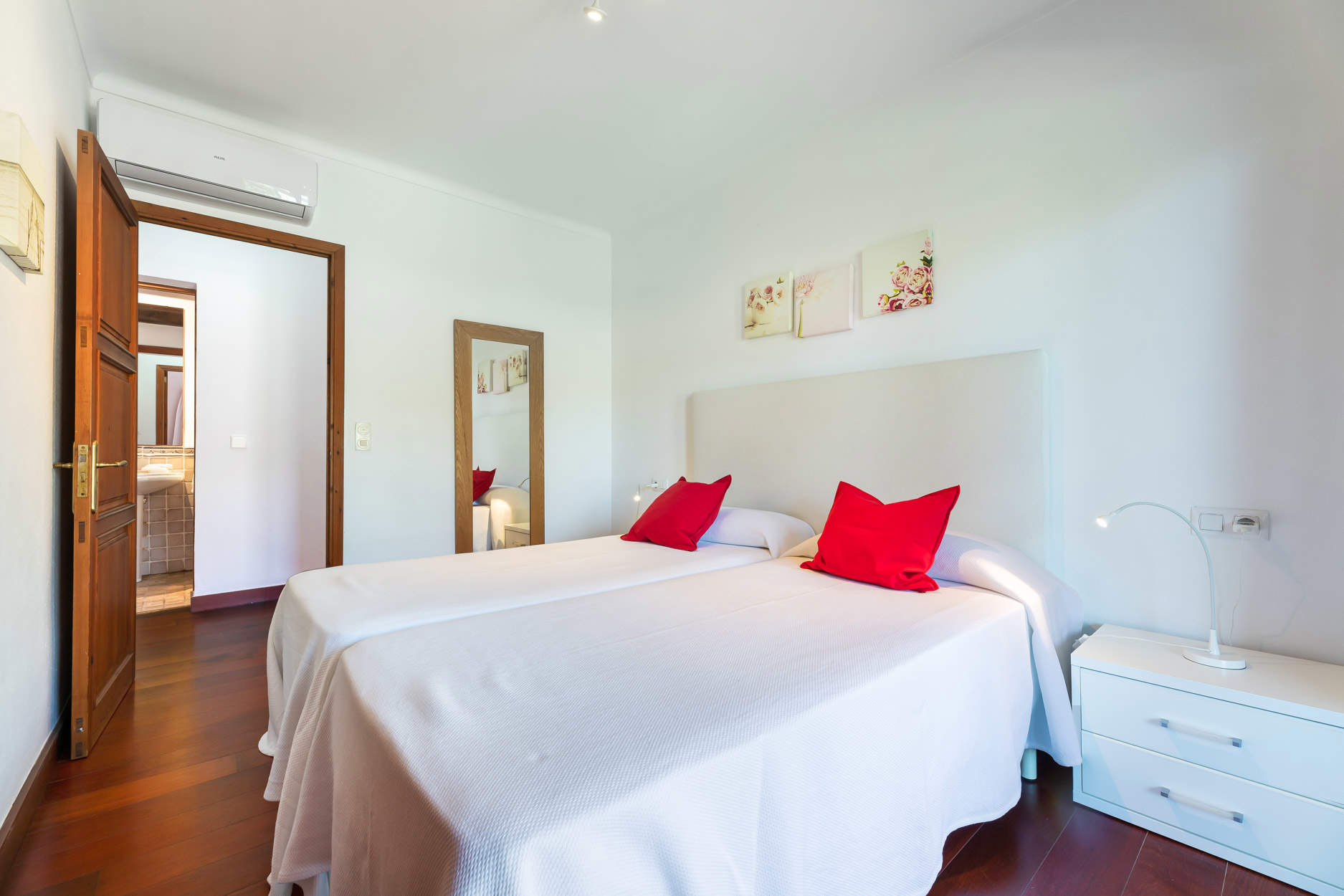 1 double bedroom with doors to terrace and en-suite bathroom, 2 twin bedrooms, both with doors to terrace, 1 shower room.